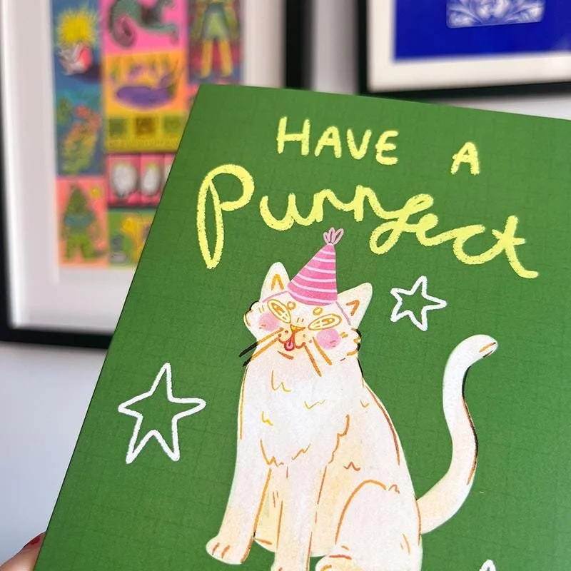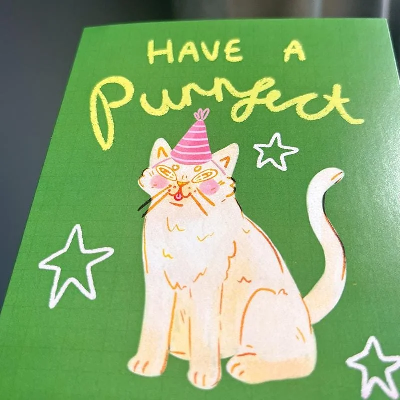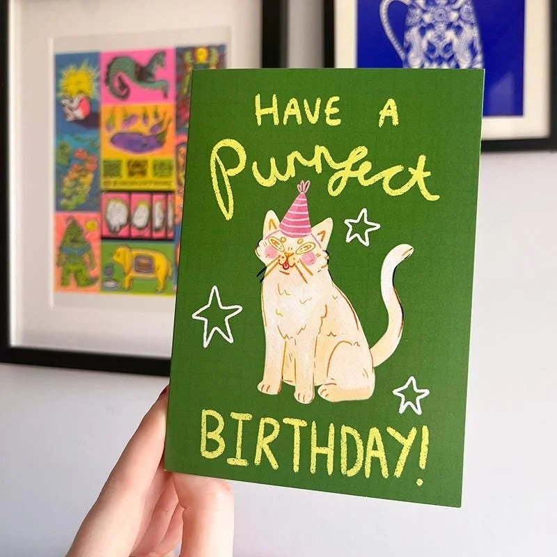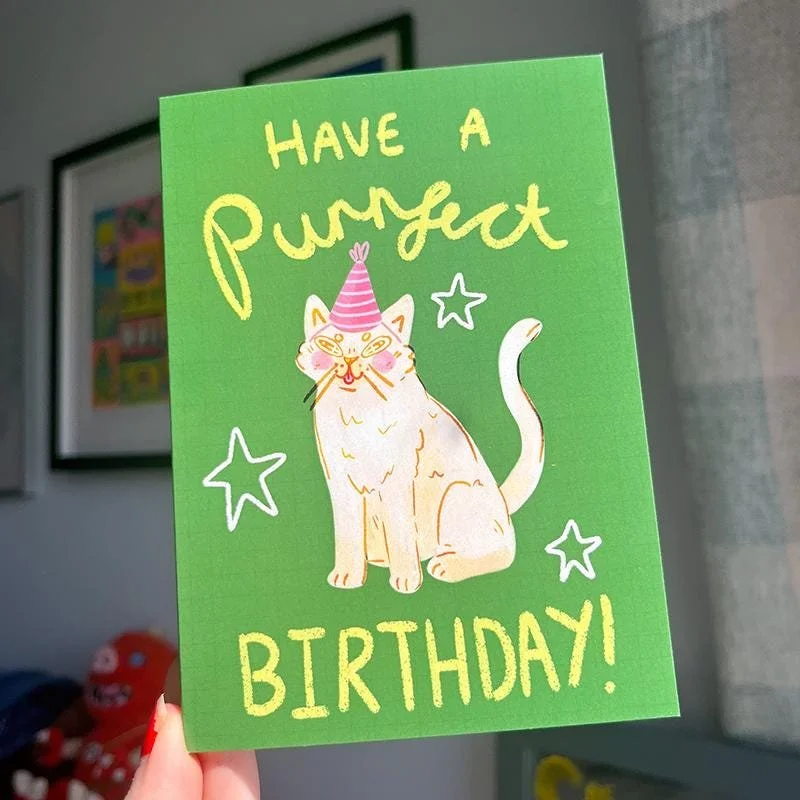 Store › Party Cat Birthday Card, pun purrfect Image 1 of 4 Image 2 of 4 Image 3 of 4 Image 4 of 4 Party Cat Birthday Card, pun purrfect £3.50 A6 purrfect cat birthday card, perfect for any cat lover! comes with an envelope. Add To Cart Added! A6 purrfect cat birthday card, perfect for any cat lover! comes with an envelope.